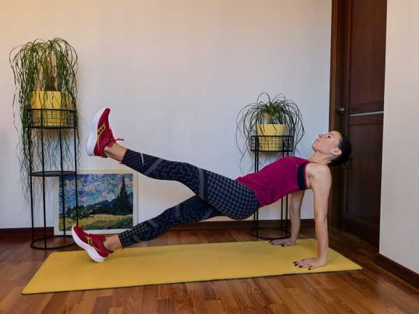 Двигайтесь плавно и аккуратно. Проверьте, чтобы поверхность под вами была нескользкой во избежание травм. 8-10 повторений на каждую сторону.